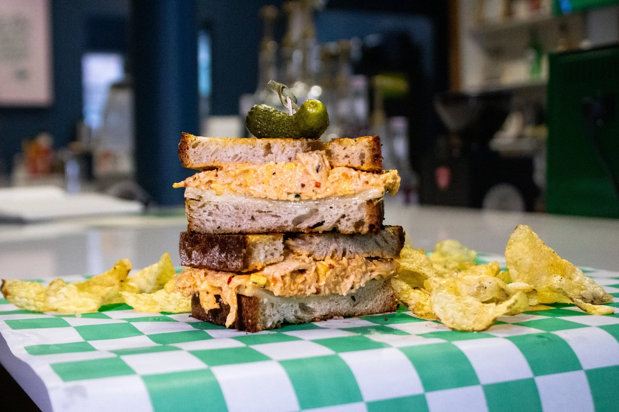 rustic white bread, buffalo chicken, house-made buffalo ranch sauce, pimento cheese, pepper jack