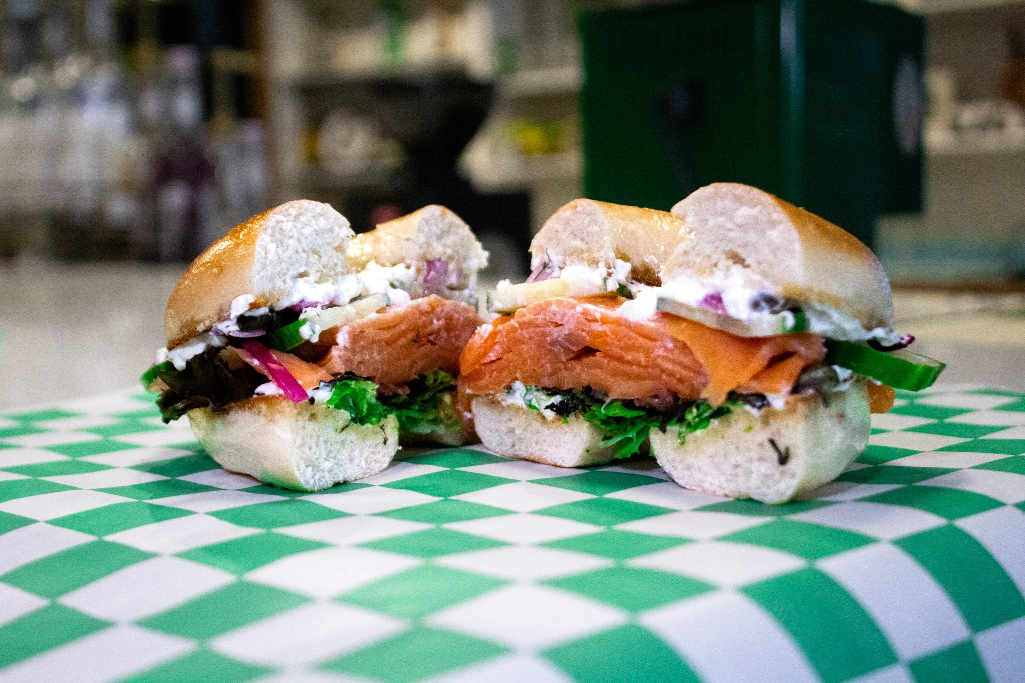 NY Bagel, Smoked Salmon, Mixed Greens, Cream Cheese, Cucumber, Onions, Capers, Dill