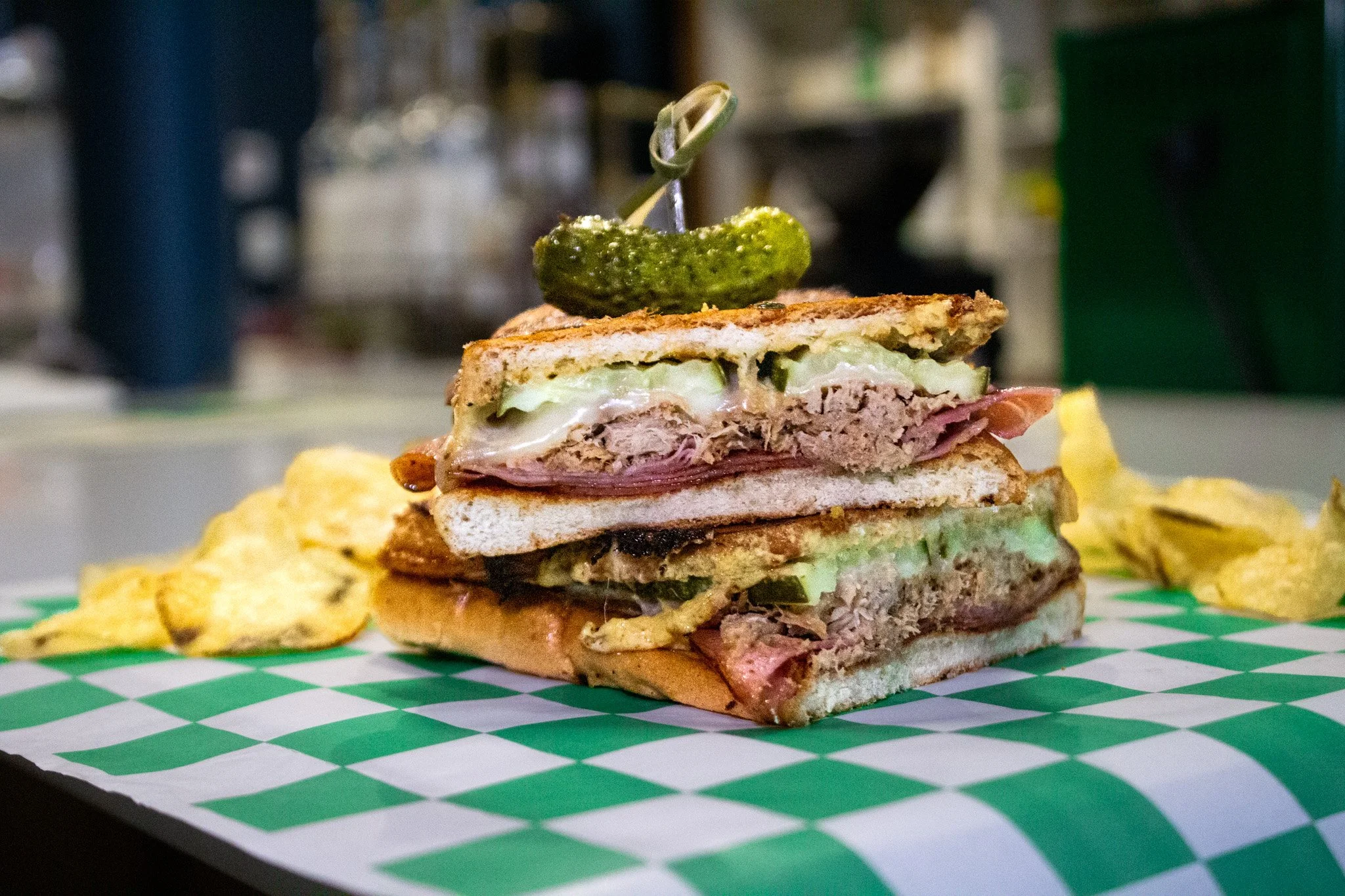 cuban bread, marinated pork, smoked ham, provolone, dijon mustard, pickle slices, pressed