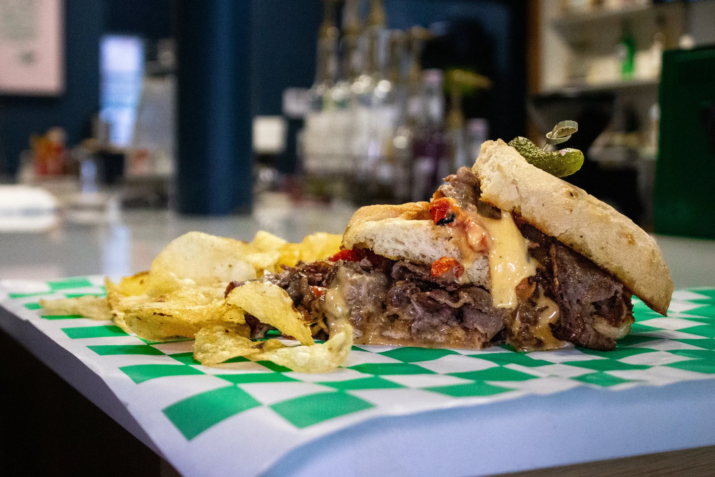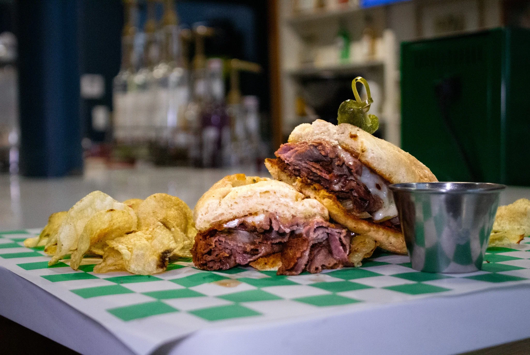 hoagie roll, shaved beef, provolone, giardiniera, side of au jus