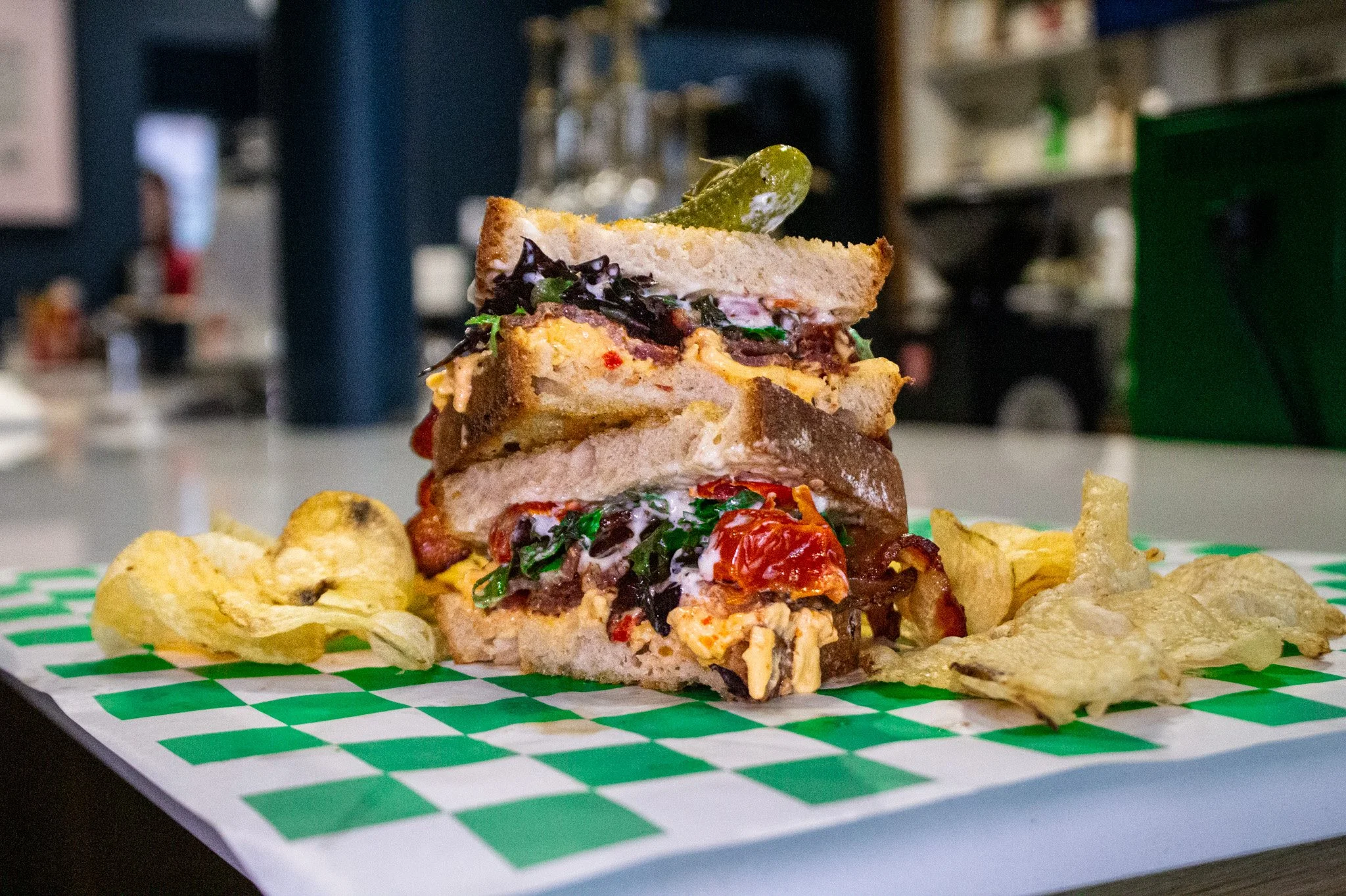 rustic white bread, bacon, mixed greens, tomato, pimento cheese, garlic aioli